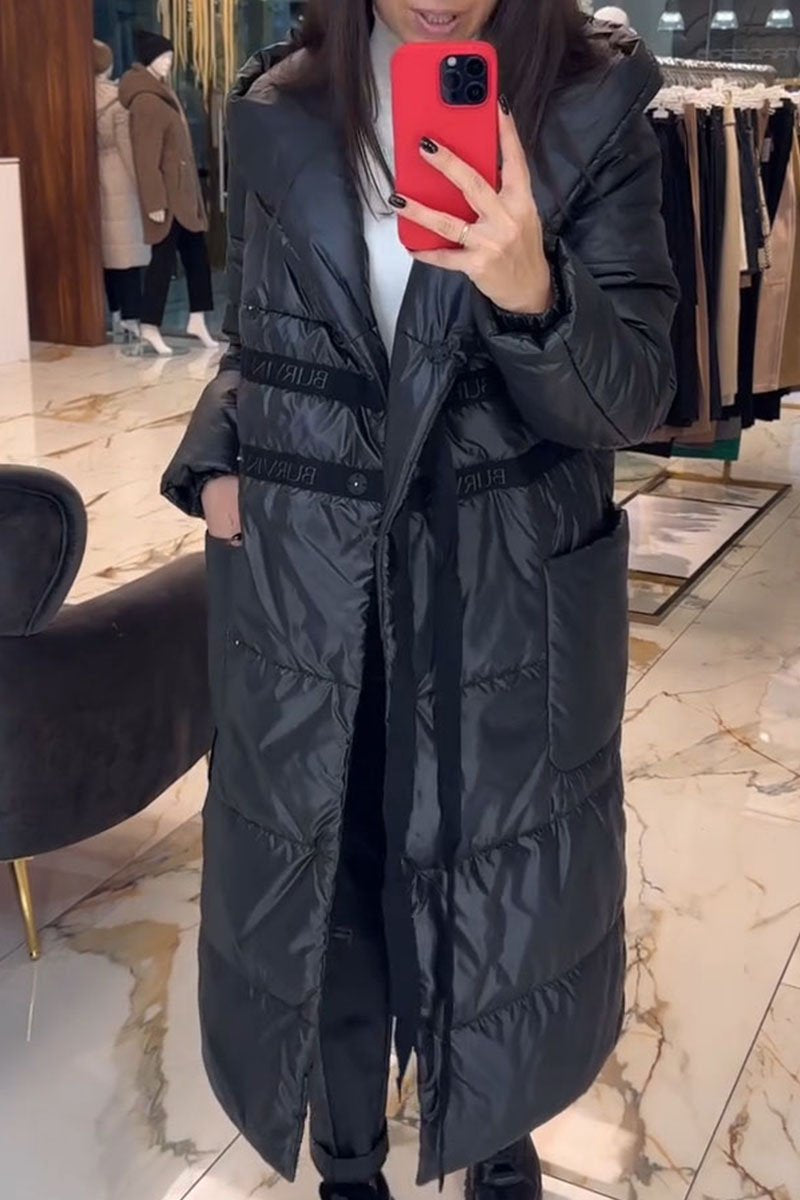Chaqueta acolchada con capucha y cordón de diseño informal Cocoa Elegance