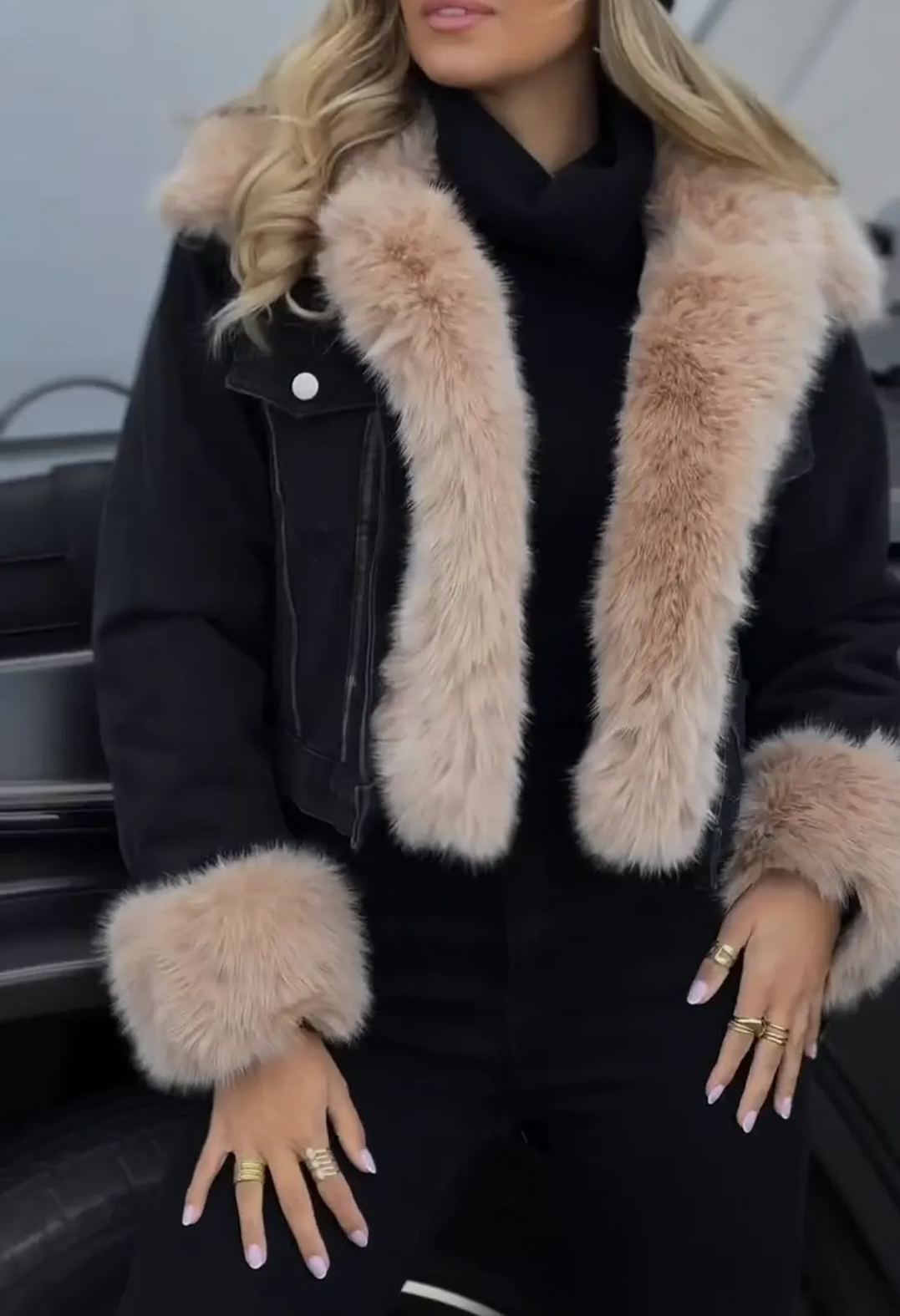 Estilo: Esta chaqueta presenta una silueta clásica de denim realzada con un forro de piel sintética suave que añade un toque de elegancia. El cuello oversize y el suave ribete de piel alrededor de los puños aportan una vibra acogedora a esta pieza chic. Es lo suficientemente versátil para vestirse para una noche fuera o llevarse de manera casual para un día en la ciudad.