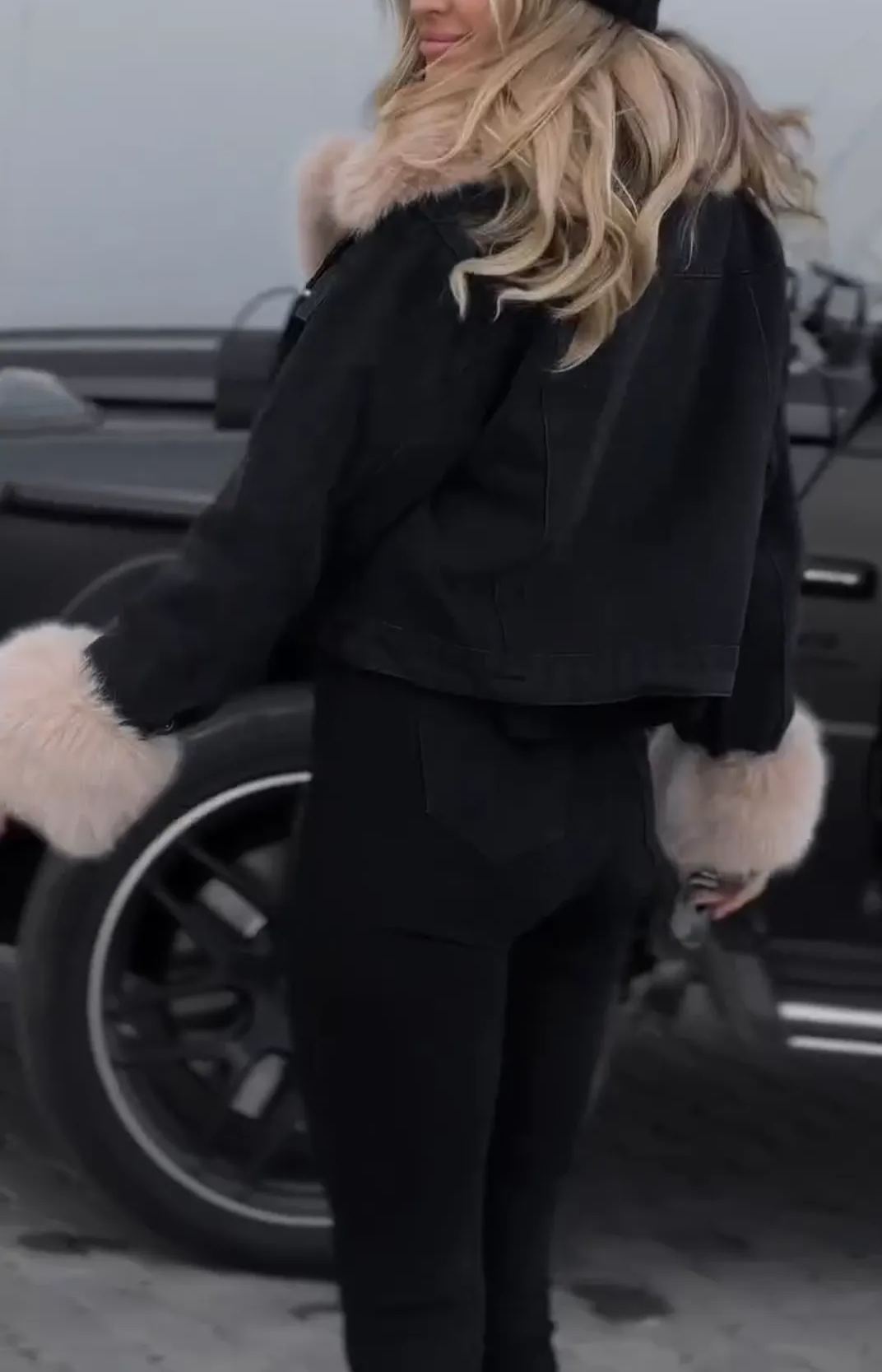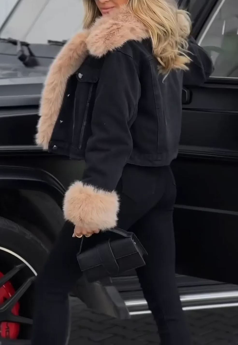 Chaqueta vaquera elegante con forro de piel sintética